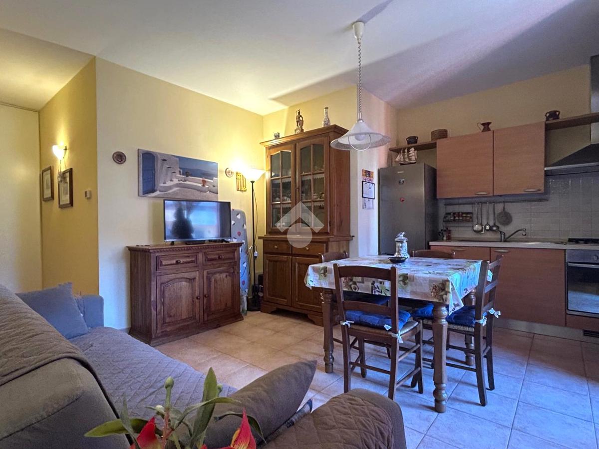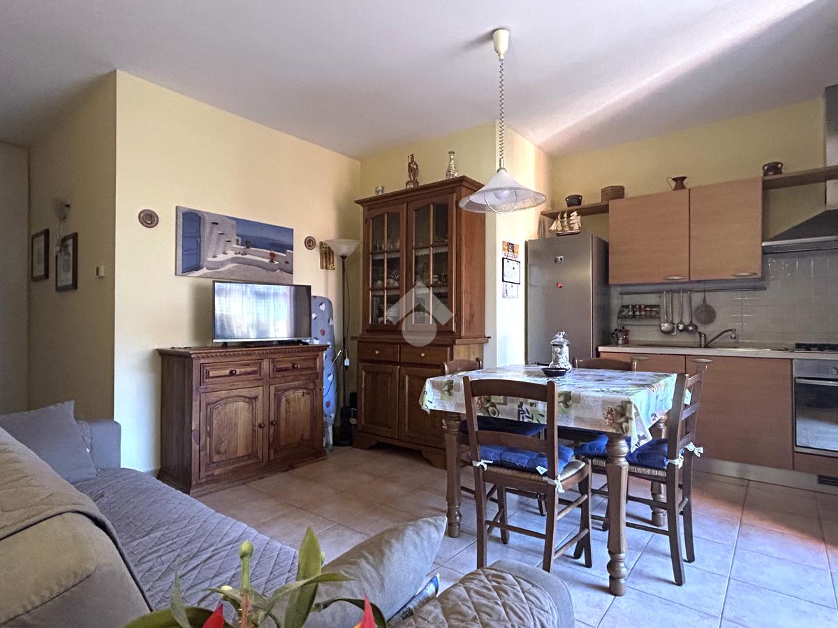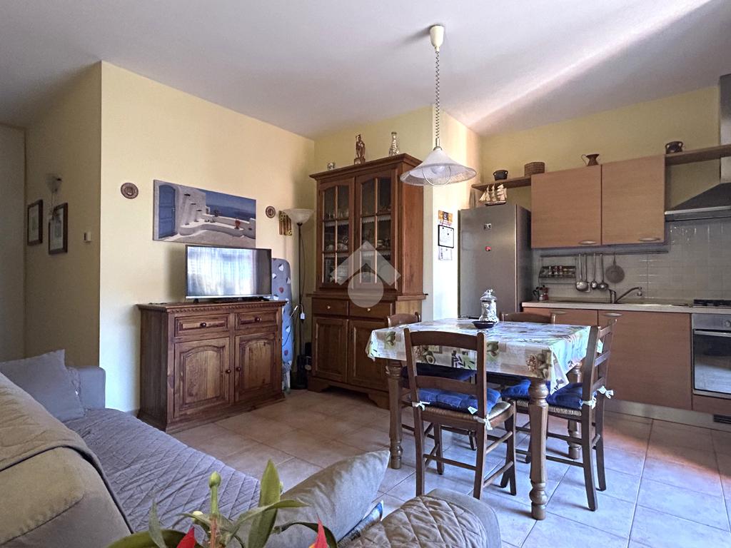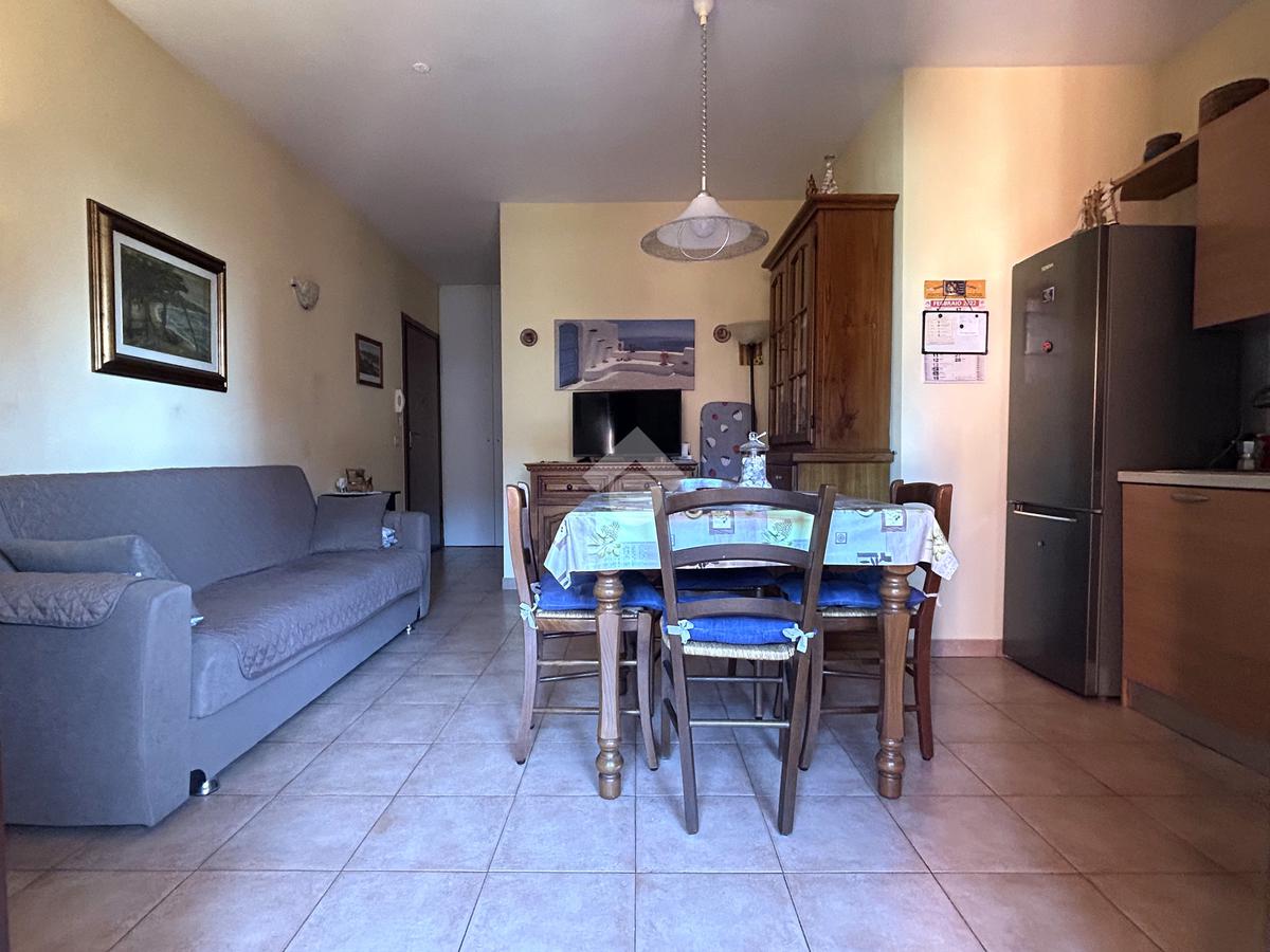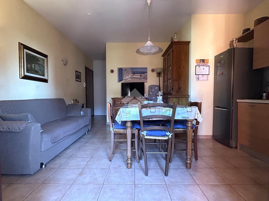 L’ingresso si apre su una zona giorno ben organizzata, dove soggiorno e angolo cottura convivono in un ambiente funzionale e accogliente. Gli arredi valorizzano gli spazi e permettono di abitare l’appartamento da subito, senza ulteriori interventi.