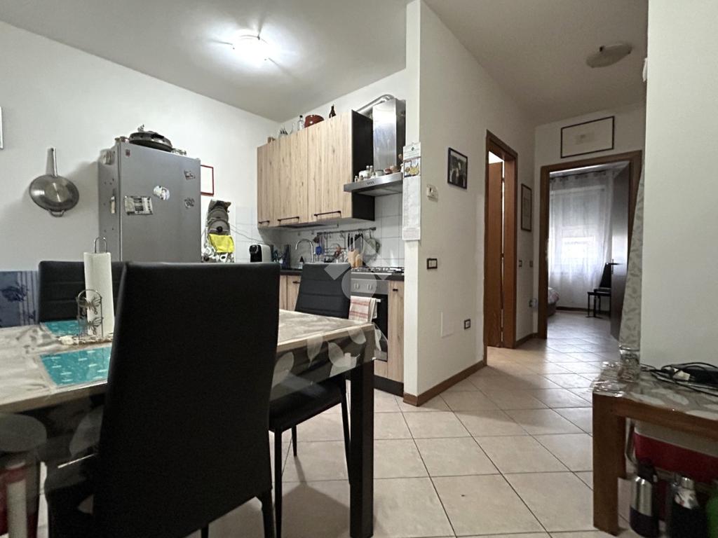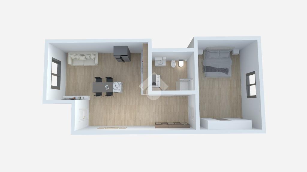La disposizione interna consente un utilizzo ordinato degli spazi, con una distinzione chiara tra area giorno e area notte. Il soggiorno con angolo cottura rappresenta l’ambiente principale, mentre il disimpegno permette l’accesso alla camera e al bagno. La camera matrimoniale offre spazio sufficiente per arredi standard. Il bagno è dotato di sistema di aerazione meccanica.
