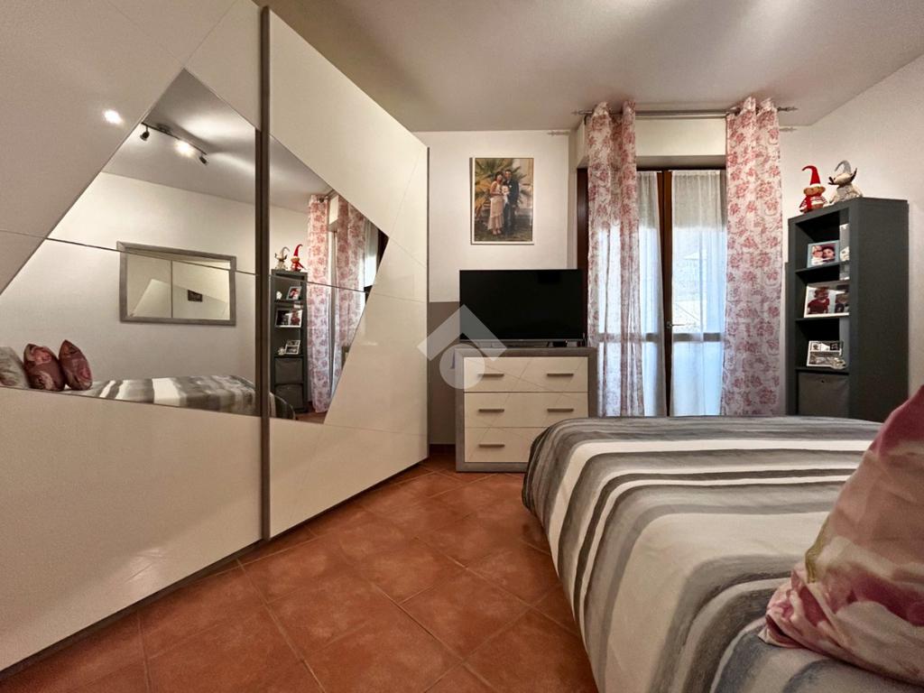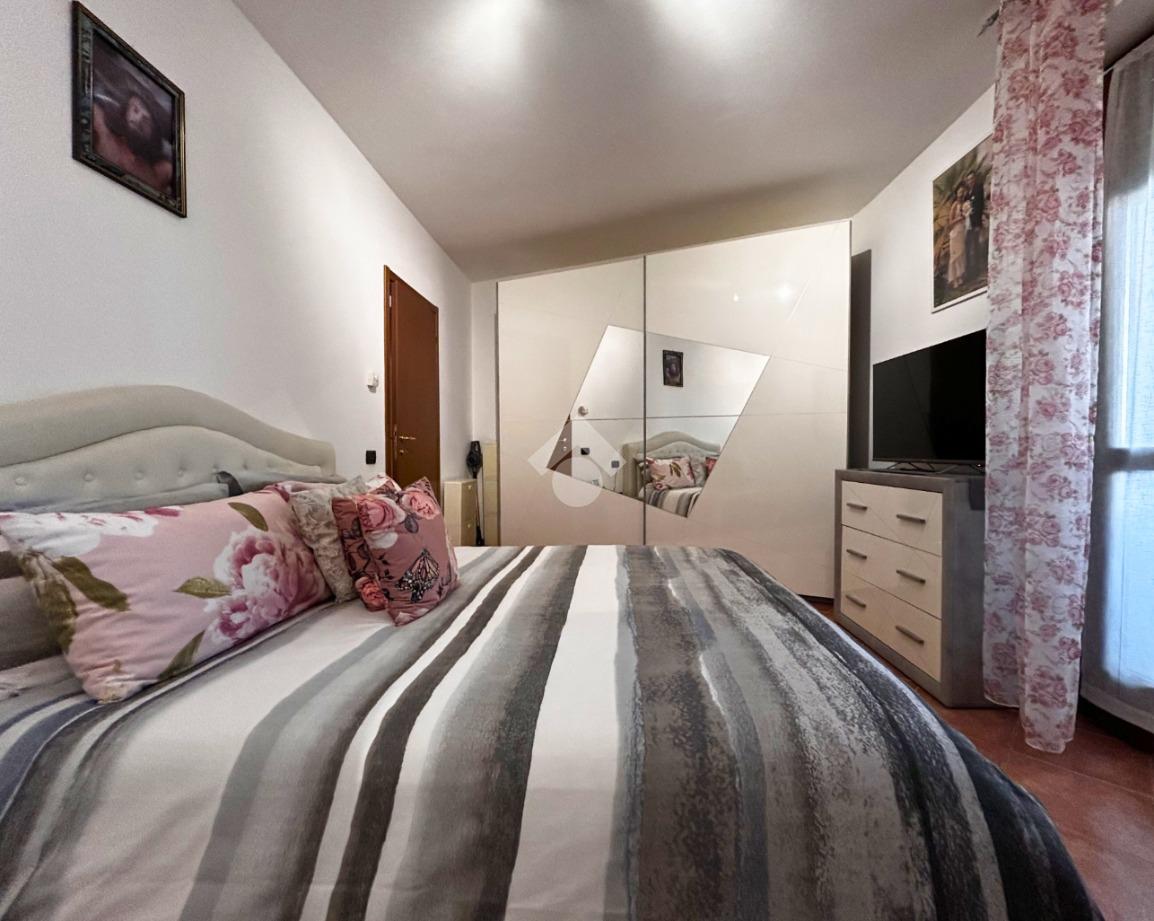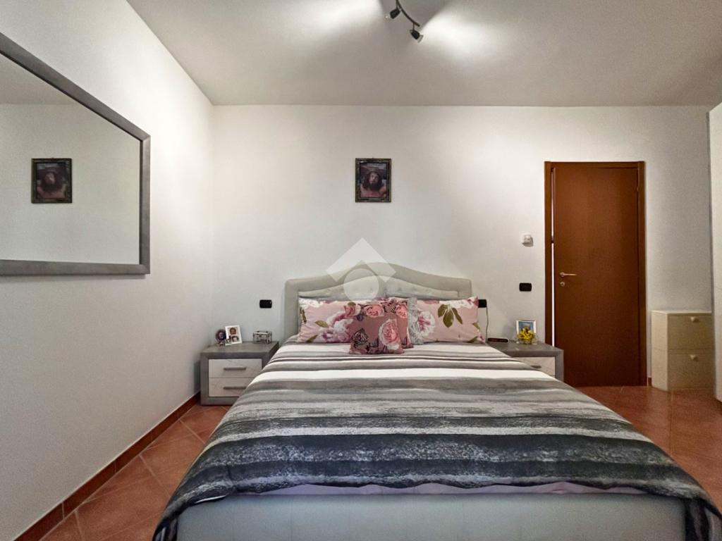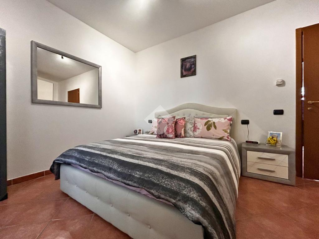 Proseguendo nella zona notte troviamo il bagno finestrato, ben rifinito e completo di troviamo la camera matrimoniale, spaziosa e confortevole, anch’essa con accesso diretto al terrazzo, creando una continuità tra interno ed esterno molto piacevole.