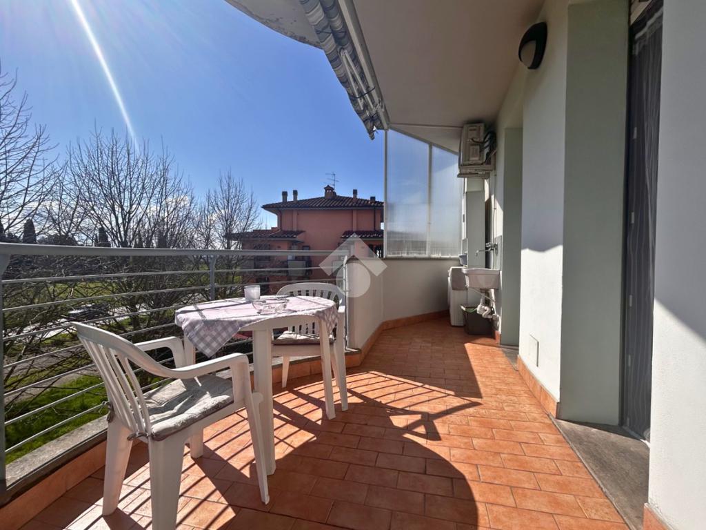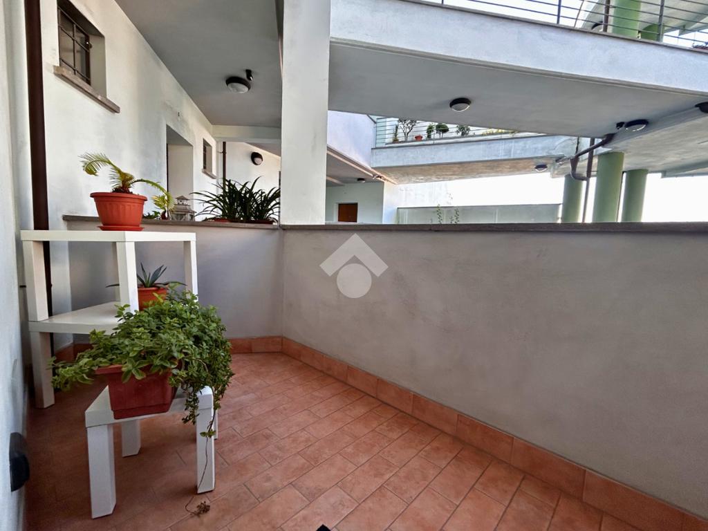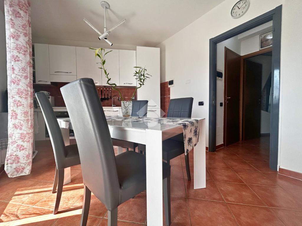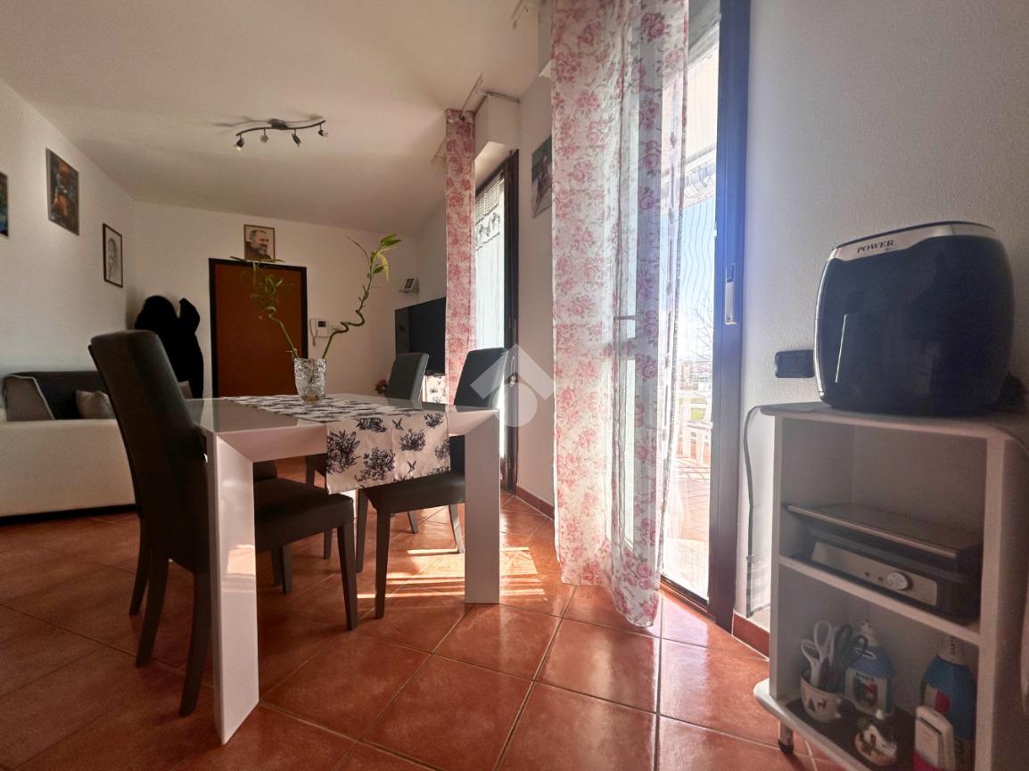 Entrando nell’abitazione veniamo accolti da una luminosa zona giorno, ambiente accogliente e funzionale che gode dell’accesso diretto a uno splendido terrazzo semiabitabile, perfetto per essere arredato con un tavolino e sedie e vivere piacevoli momenti all’aperto.